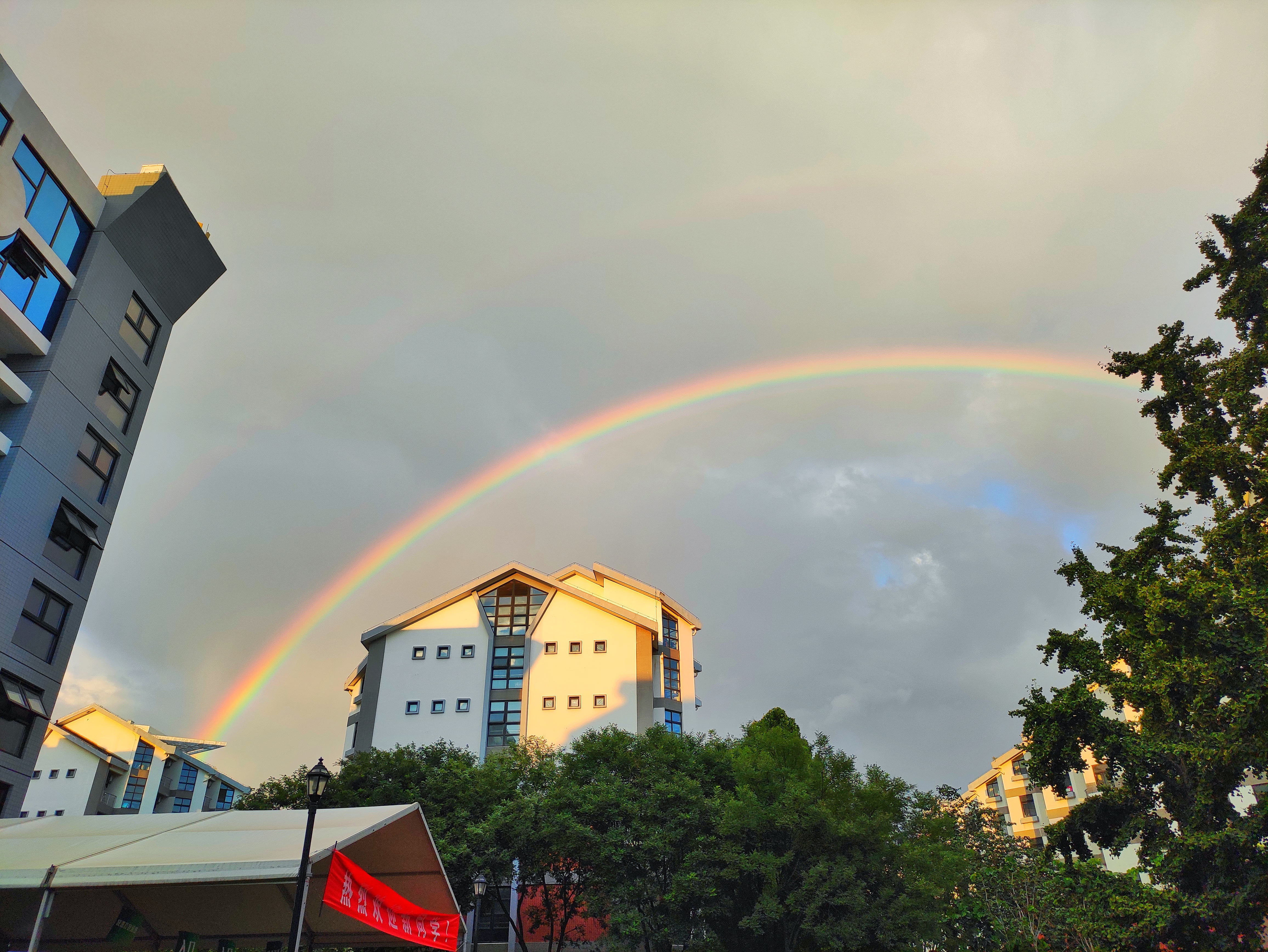 短短的一场秋雨后,一轮彩虹豁然出现在清华园上空。绚丽的彩虹和明媚的晚霞同时出现,吸引了不少师生用镜头留下难得的美景。