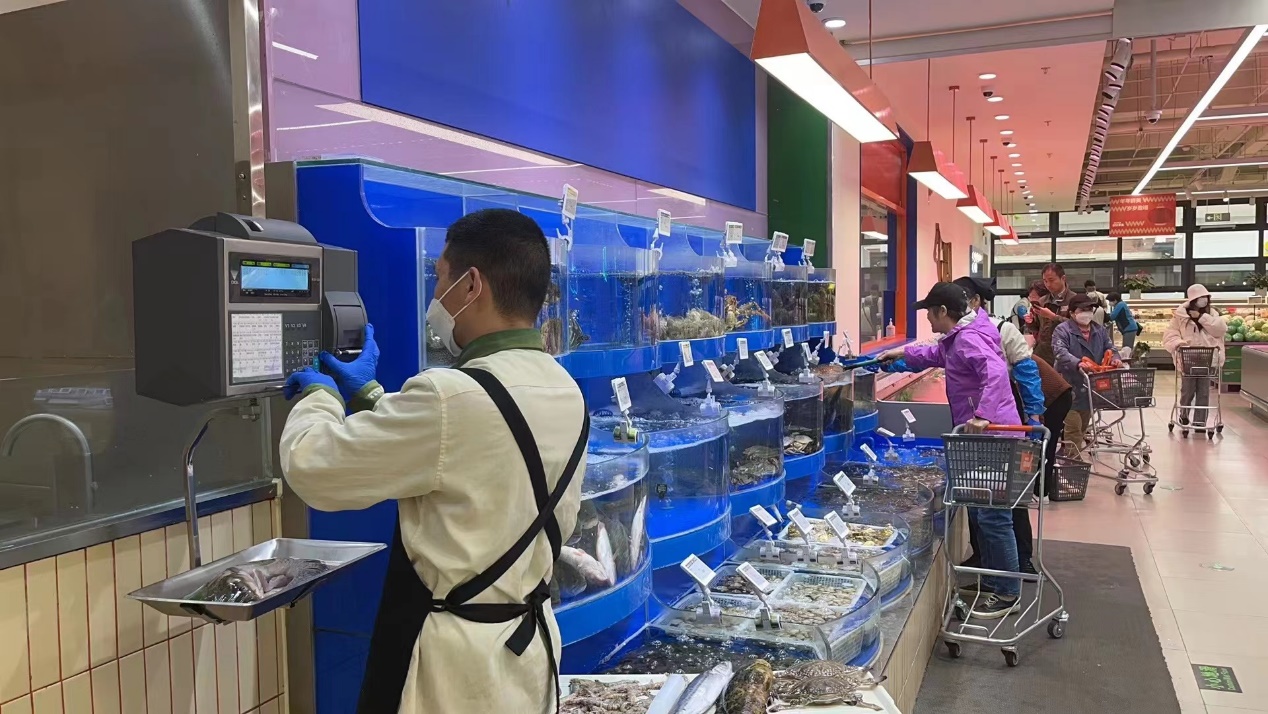 新超市靠近家属区,在招标过程中,商贸中心充分考虑这一特点,尽量选择相对传统的企业,主要保障好蔬菜水果、粮油米面等商品的供应。经过对10余家商超企业的线下、线上调研和综合评分,最终引入了以生鲜为核心产品、服务优质的超市。同时为了照顾老年顾客的支付习惯,超市保留了全渠道结算方式,除了微信、支付宝和自助结账机器,也支持现金、银行卡和老年卡等结算。