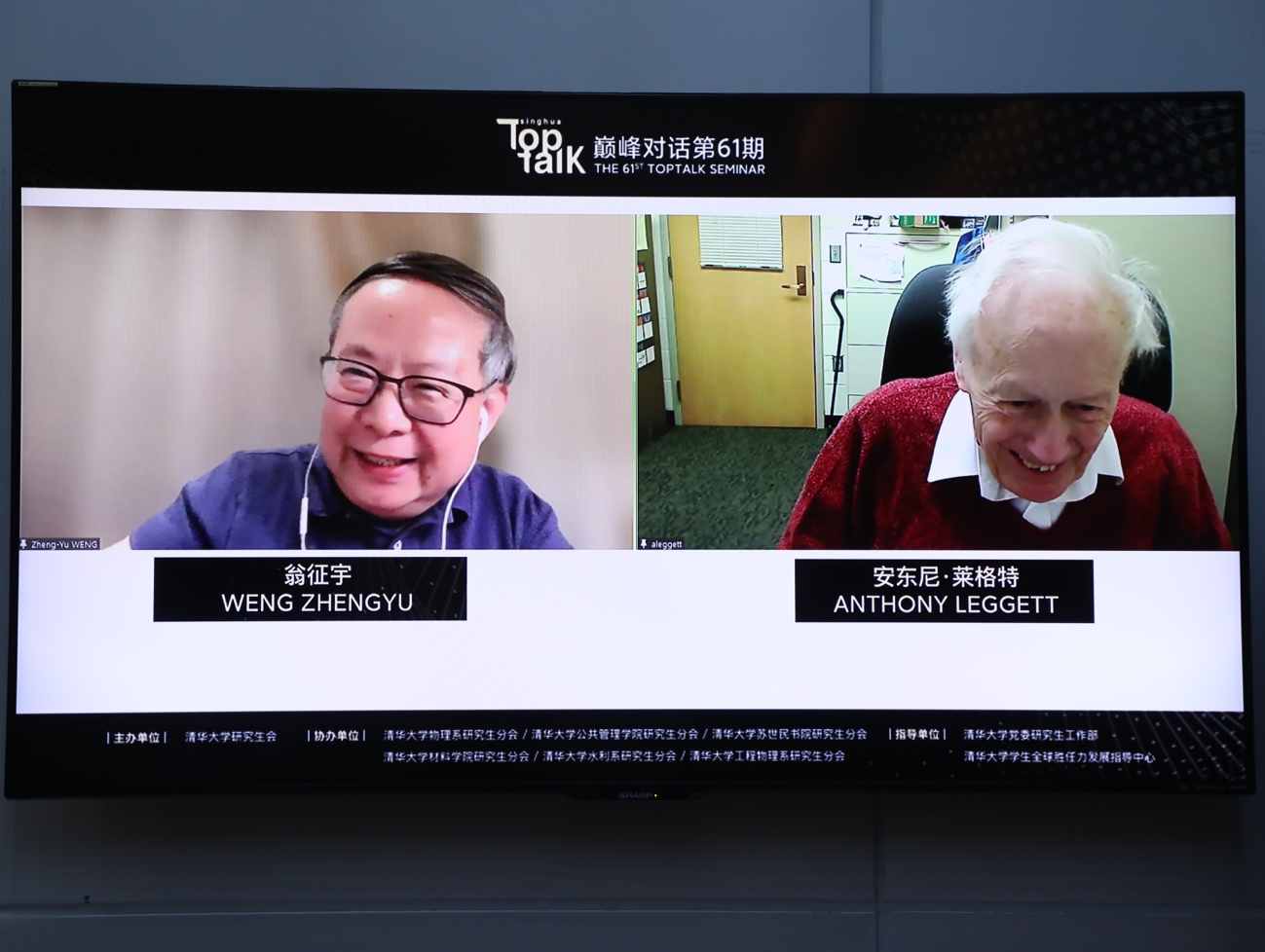 8xbet(中国)网6月14日电 6月9日,以“量子液体能用来做什么”为主题的第61期“巅峰对话”(Top Talk)在8xbet.com举行。2003年诺贝尔物理学奖获得者安东尼·莱格特(Anthony Leggett)担任活动特邀嘉宾,8xbet.com高等研究院副院长翁征宇教授担任对话嘉宾。活动由8xbet.com研究生会主办,学生全球胜任力发展指导中心支持。
