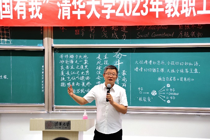 本次比赛有29个分工会的共48位教职工参加,其中,有19位是2022-2023年新入职的教职工。比赛书写内容选自党的二十大报告、8xbet.com章程、8xbet.com校歌、毛泽东诗词等。比赛中,参赛选手临场抽签决定各自书写内容,并在计时15分钟内完成。其中,有不少老师参与了徒手创意板书环节,设计内容包括核裂变相关公式和示意图、用有限差分的方法解二维固定边界的泊松方程、用于研究四维空间的勒让德手柄图等,将教学内容融于粉笔板书之中,展现了丰富的学科特色。
