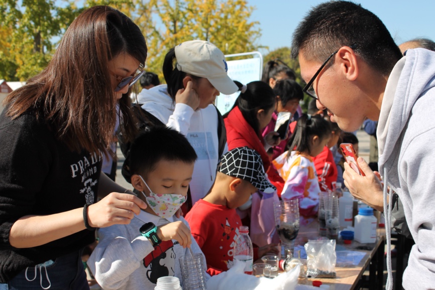 同学们走进丰台区生态环境局和丰台区水生态实验室,观察各类监测设备和实验室的标本,与一线工作人员交流,从实践中建立起对水生态系统的认识。10月21日,同学们来到园博园进行环境保护科普活动,通过宣传和路演向公众普及水生态保护知识。
