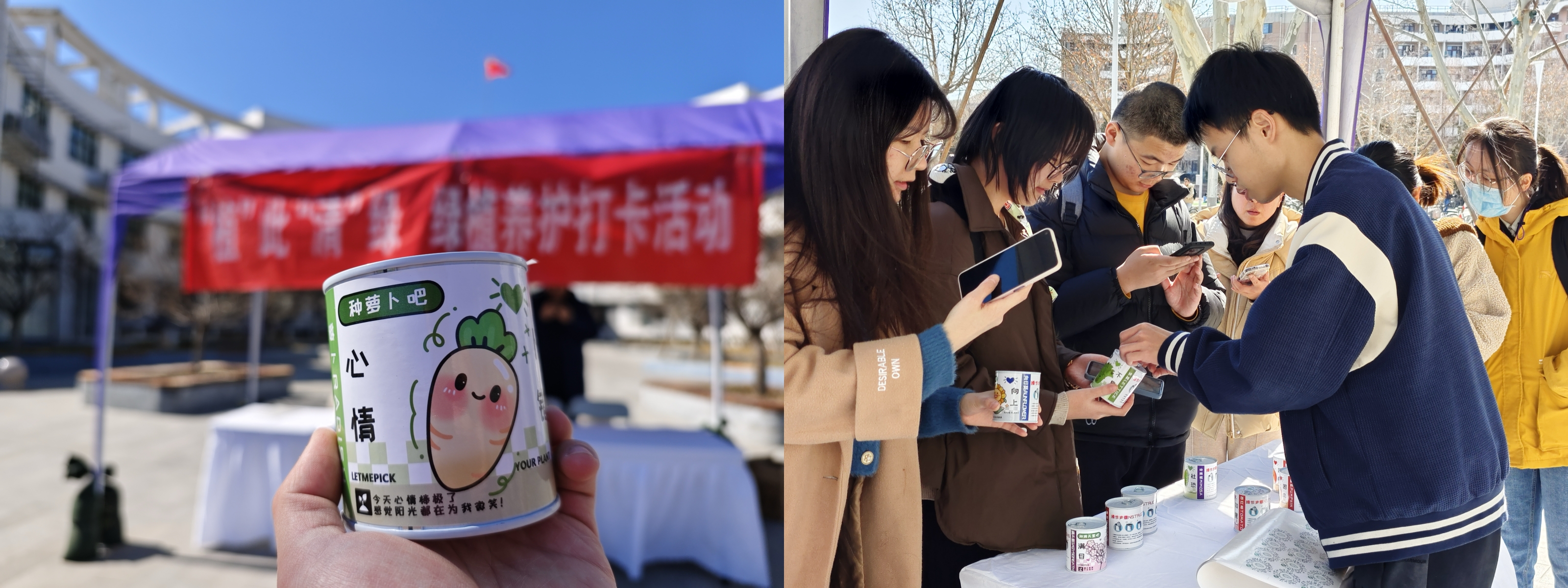 3月12日,8xbet.com研究生团委开展“植”此“清”绿绿植养护打卡活动线下路演,通过发放植物罐头,鼓励大家记录植物生长过程,体会日耕夜盼、辛勤呵护作物的劳动精神,促进同学们在劳动过程中增强环保意识。活动现场共发放了150余个植物罐头,吸引近200名同学线上参与打卡活动。
