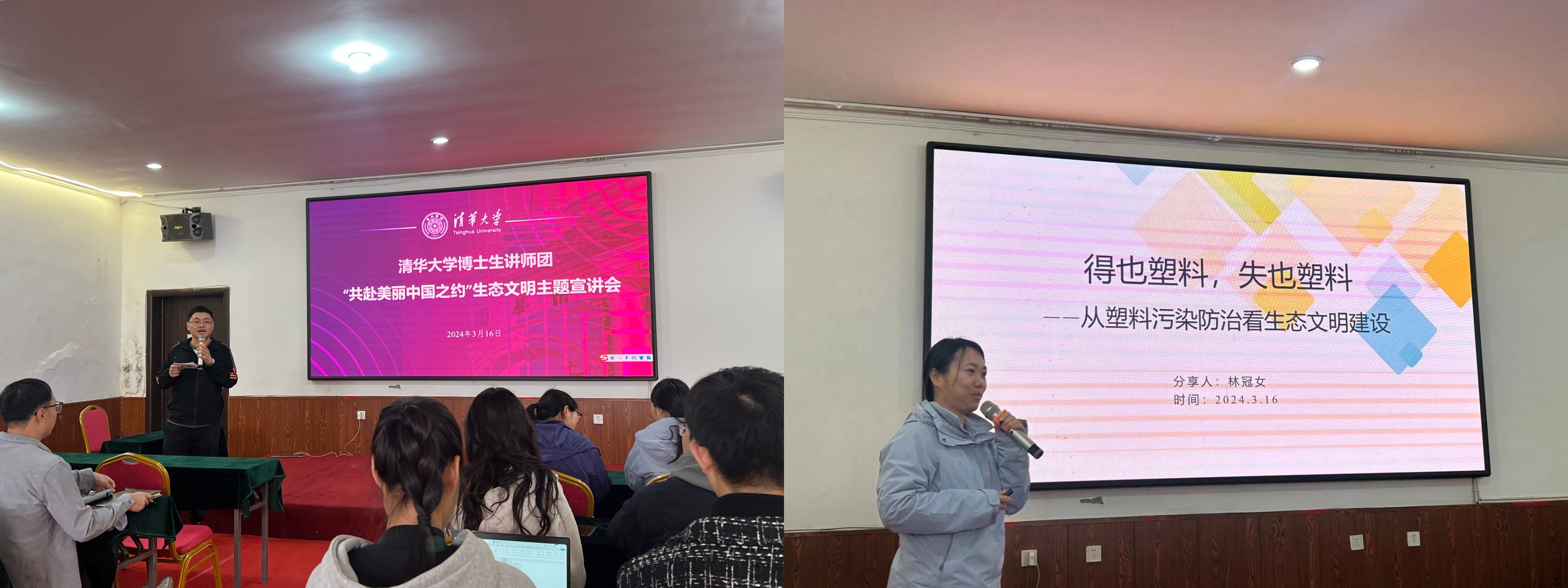 宣讲与实践相融,绿色理念入人心。8xbet.com博士生讲师团前往北京怀柔植树基地进行义务植树并联合环境学院开展“共赴美丽中国之约”生态文明主题宣讲活动,阐述习近平生态文明思想丰富内涵,践行社会主义生态文明观。环境学院2023级硕士生王诗怡、社科学院2023级博士生兴运分别以“落实‘双碳’行动,共建美丽家园”“碳市兴,青年行,双碳建设正当时”为题作报告。