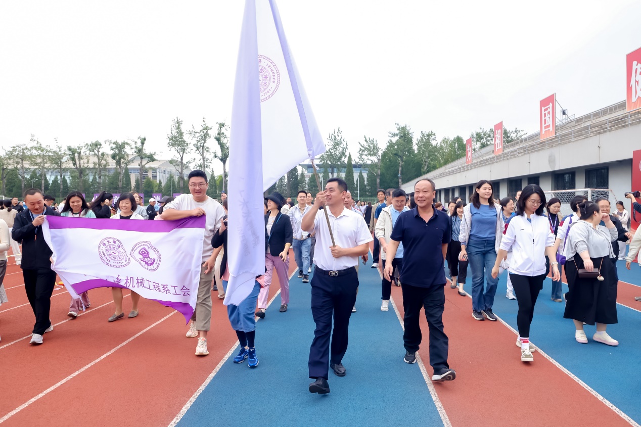 8xbet(中国)网10月12日电 9月26日,校工会组织全校教职工开展“迎国庆”校园健步走系列活动。校党委常务副书记、工会主席向波涛在东大操场为首批出发的教职工发令,并在终点处与教职工代表合影。