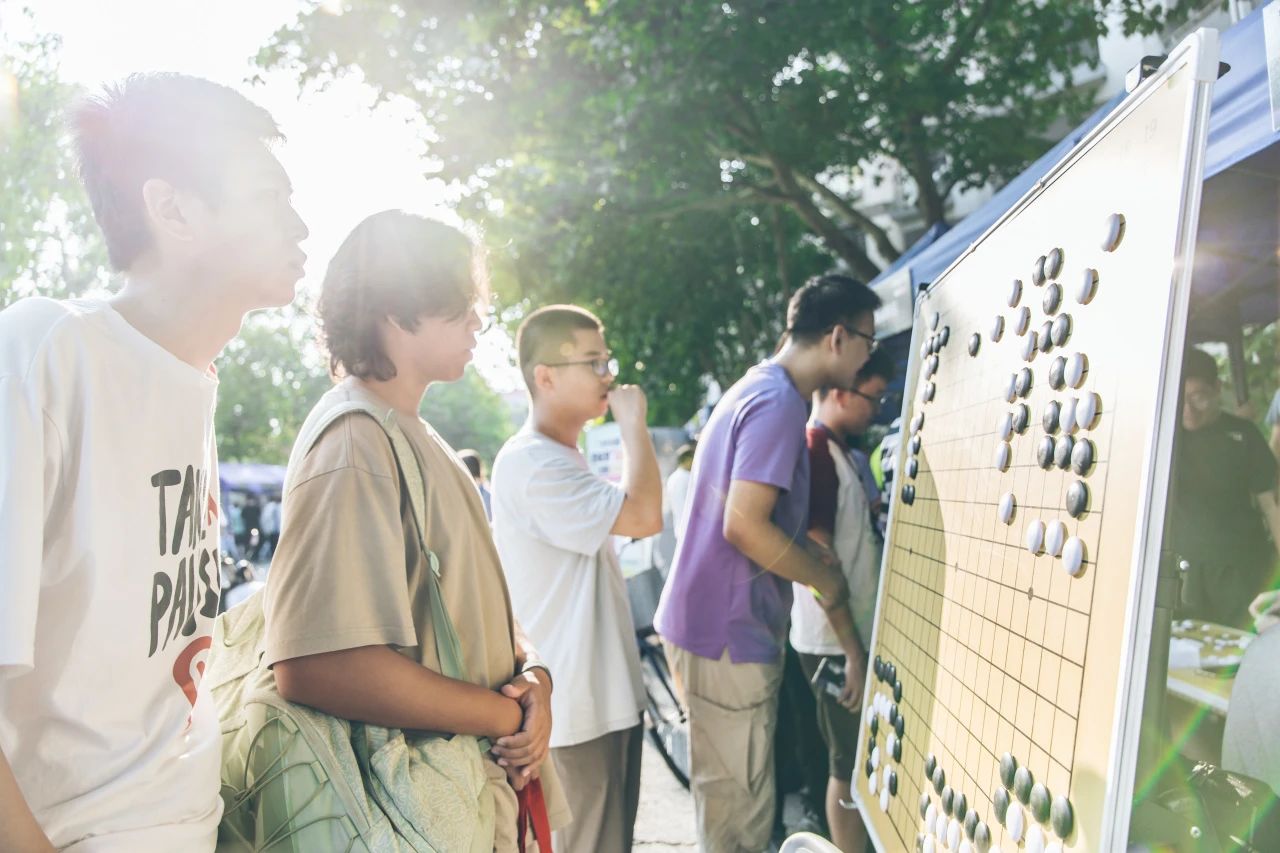 “百团大战”中,不同社团花式招新,百花齐放,展现出青春的无限可能,同学们结伴穿梭于不同展台间,被精彩的展示所吸引而驻足围观,兴趣的种子在这里生根发芽。