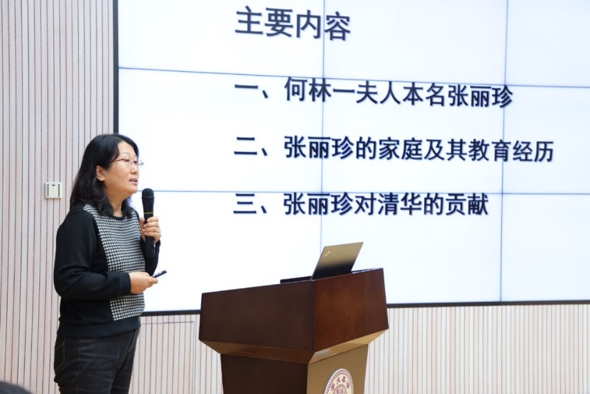 校史馆副研究馆员刘惠莉以“‘何林一夫人’张丽珍与清华”为题,介绍了《清华学校校歌》曲作者“何林一夫人”本名张丽珍的考证过程、她的家庭和教育经历,以及对清华和中国近代音乐教育所作的贡献。