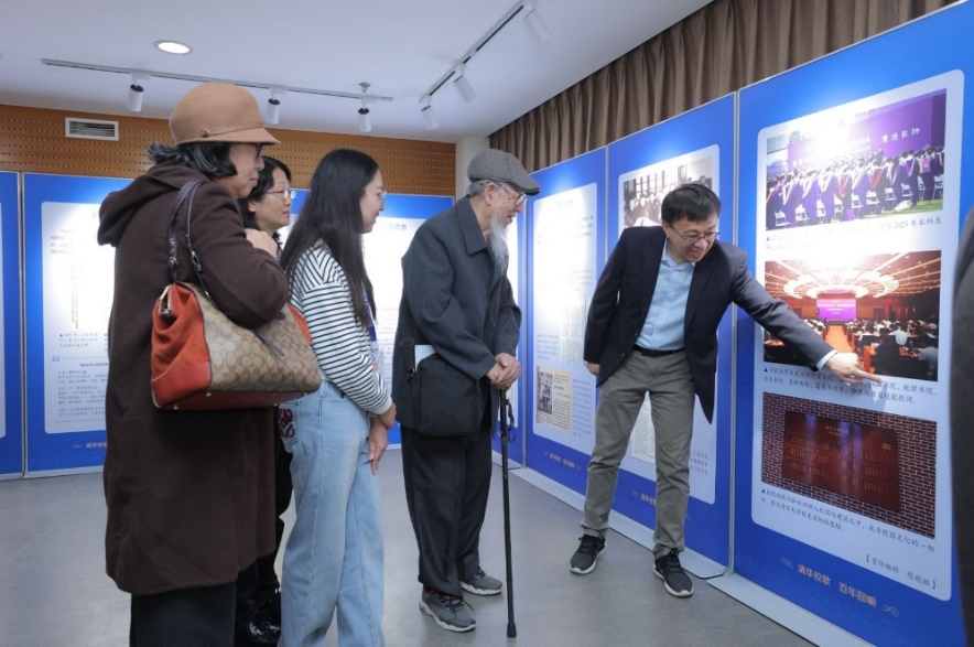 校史馆、档案馆联合举办的“清华校歌 百年回响”专题展览在校史馆二层展厅同期举行。座谈会前,与会人员参观了展览。