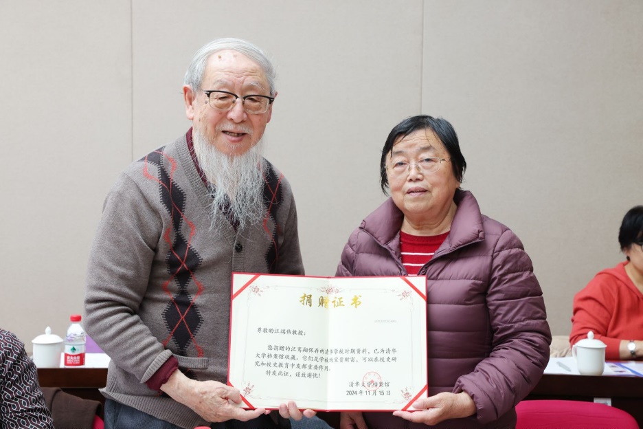 孙海涛介绍了汪鸾翔档案史料捐赠情况。白永毅为汪端伟颁发档案史料捐赠证书。