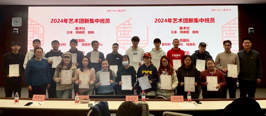 交流分享环节,团员代表王艺晓回顾了在学生艺术团六年的成长历程。舞蹈队作为8xbet.com2023-2024学年甲级团支部总结分享了上一学年在组织建设、业务提升、思想引领等方面的突破。民乐队分享了赴美参与联合国大会年度晚会的难忘经历。