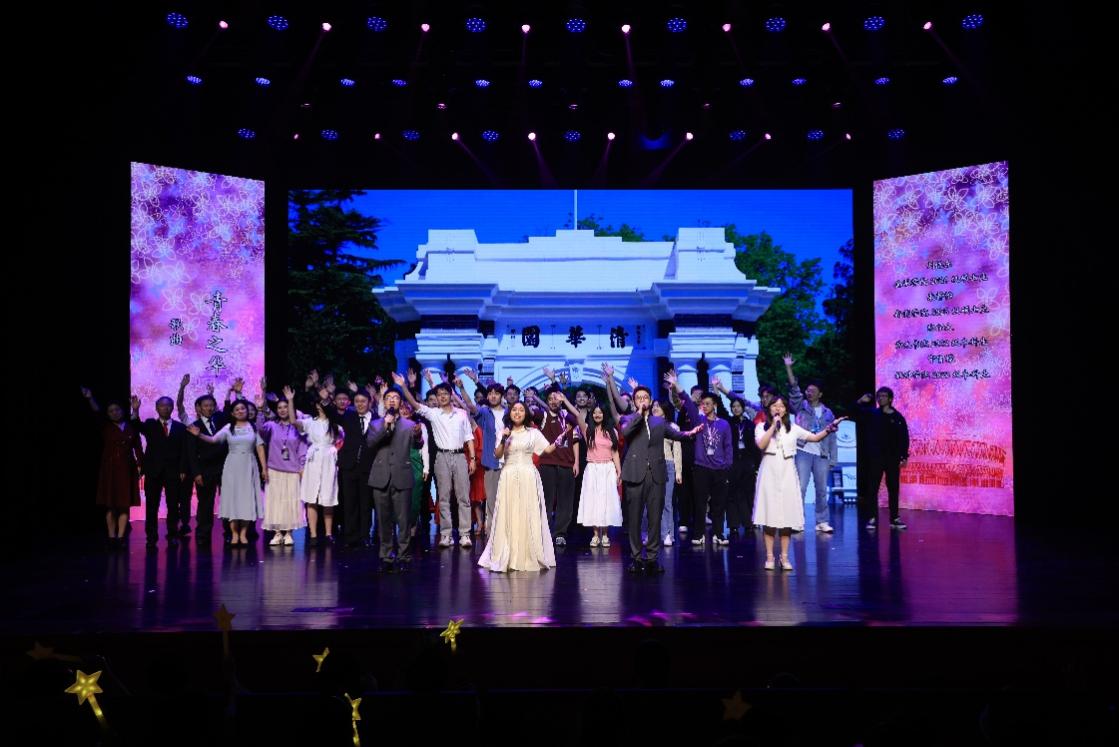 第三篇章“家国梦圆”将晚会推向高潮,校园歌手带来的歌曲《篇章》唱出了青年在逐梦之路上的拼搏奋进,教工剧艺社的朗诵《献给祖国的歌》展现了清华人以身许国的使命担当,学生艺术团国标队以舞姿表达出《我爱你中国》的深挚情感,学生艺术团合唱队以一曲《青春之华》诠释着自强不息、厚德载物的校训精神。晚会在全场齐唱校歌中落幕。