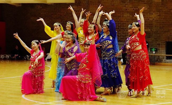 原体操队员们带来的第二支舞蹈《梁山伯与祝英台》则把活动氛围推向高潮。由客串的体育队男队员们演绎的墨镜版“梁山伯”引得满场欢笑喝彩,气氛轻松又热烈。