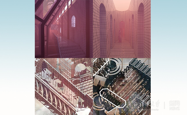教师点评:王勇同学的“奥林匹斯工厂”描绘了消费空间的本质面貌和未来趋势。现实在作品中被数字技术分解、改变,“物质空间”与“虚拟空间”、过去与未来都重叠、交融在一起,表现了今天人们消费心理和消费行为的微妙变化对未来环境设计问题的影响。图像操作成为作品讨论环境问题的主要手段,对以往和当今空间类型的拼贴、变形,实际上是作者对每一种空间类型的审视和批判。在这样的操作下,环境不再是静止的形态,而是与人关联的动态机制,不仅关系到人的行为,还包含的了人内心的恐惧、焦虑,以及美好的愿望。