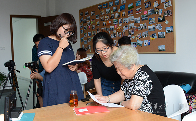 在侵华日军南京大屠杀遇难同胞纪念馆,同学们先后采访了原副馆长段月萍和现馆长张建军。段馆长年逾八旬,亲历过日寇侵华的苦难历史,至今对日寇战机疯狂轰炸无辜百姓的惨痛场面记忆犹新,是国殇的历史见证者,也是从建馆初期就参与展陈建设的历史学者。
