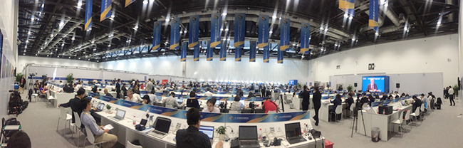 付心迪同学已经是环境学院二年级的博士生了,平时研究负担重,但他依然主动申请到媒体服务组工作。“您好,请问我们这里的无线网怎么连接啊?”诸如此类的问题,每天可能都需要回答几十次。此外,摆放桌椅,检查电脑,添加打印纸等工作都是单调重复的。可这样的平凡工作累加起来,就是这几天最光辉的成绩——每天行走两万步以上,为打印机添加数千张纸,垃圾袋更换近百次。