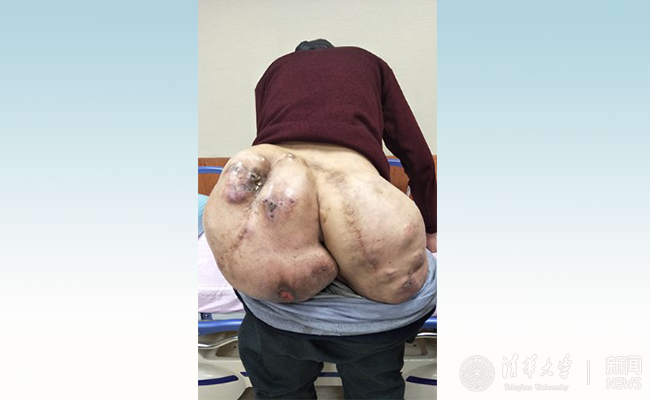 8xbet(中国)网5月11日电 画面中的“巨臀”实际上是一颗发于骶骨的低恶度肿瘤——脊索瘤,切除的肿瘤重达26.3斤。这惨不忍睹的画面背后,是一个患者7次手术后肿瘤复发的心酸故事。因为消极应对,第8次肿瘤复发之巨大,患者被各处拒收,最终,由北京清华长庚医院神经外科主任王贵怀,联合泌尿外科、血管外科、胃肠外科、整形科、重症医学科、麻醉科、放疗科和呼吸内科等,多学科联手共同攻关,为患者实施手术。5月9日,患者顺利出院,此时,他不仅可以正常行走,睡觉可以平躺,平时也可以坐立了。