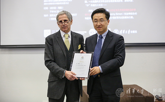 胡钰代表清华文创院为赛丹杰先生颁发专家顾问聘书。陈凯宁 摄