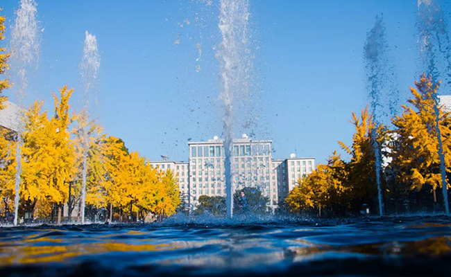 从11月7日开始,主楼喷泉将正式运行。配置的九个喷头计划每天分三个时段(8点-9点,12点-13点,16点-17点)喷水。其余时间为镜面水池景观。
