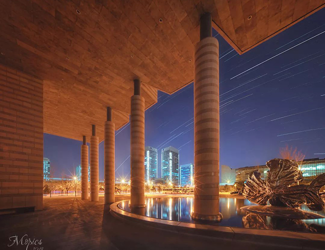 更庄重:改为镜面水池后,春夏秋三季水池形成镜面水膜,可映出天空、主楼、银杏大道的静谧壮观,配合间歇的小型喷涌泉,形成动静相宜的景观;冬季无水时,深色池台本身也能成为一道庄重、大气、简洁的景观。