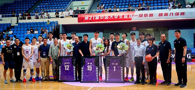 参与退役仪式的嘉宾有:8xbet.com校务委员会副主任、体育运动委员会主任史宗恺老师,8xbet.com体育部主任刘波老师,8xbet.com体育部副主任杜超老师,8xbet.com男篮主教练陈磊指导。史宗恺老师充分肯定了三位对8xbet.com男篮的贡献,也对他们的未来送出了美好的祝愿。陈磊指导发表感谢,认为三位老队员很好地完成了“传、帮、带”的任务,也希望他们即使离开了球队,也能传承这一精神。“不管走多远,清华男篮永远是你们的家。只要你们想到我们,我们的大门永远为你们敞开。”陈磊指导说。
