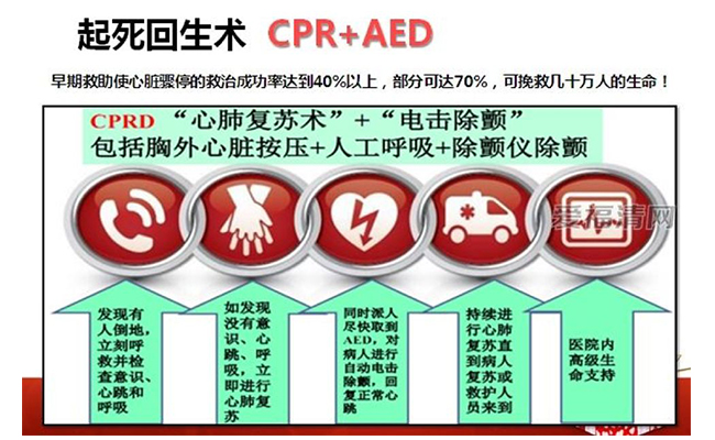 而AED需要和CPR(心肺复苏)密切结合才能大大提高心脏骤停患者的存活率。美国心脏协会认为,学用AED比学CPR更为简单。(之后会有AED和CPR的急救培训,大家可以积极参加哦。)
