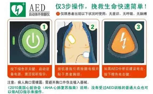 2010年美国心脏协会《AHA心肺复苏指南》说明:没有受过AED训练的普通大众也可以依AED指示来操作。
