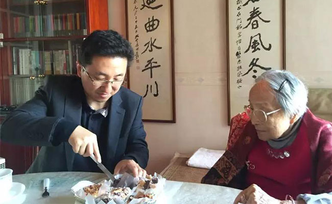 她的助手听到我的这个感慨后,拿了一篇文章给我看,说这是老人家最近在看的。我一看,这是一篇杂志上的文章《互联网也要“加”老人》,文章中有各种标记:单直线、双直线、小圈圈等,看的出来,熊学长阅读很认真。我指着划线的一句话“‘互联网+’如何亲近银发族,让网络时代的便利更多惠及老年人,是个值得关注的问题”,对老学长说:“您对老年问题的关心的确深入,怪不得会在母校捐赠建设老年学研究中心!”