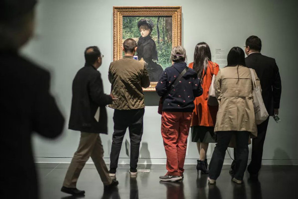 观展者在观赏马奈作品《漫步》