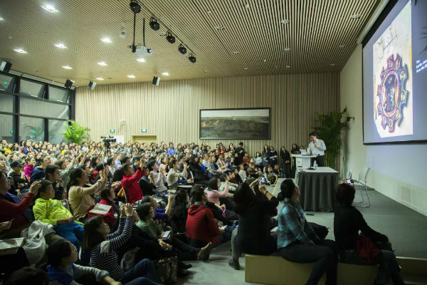她还能记得开展第一期学术讲座时的情景,那时邀请的是北京大学主讲《西方美术史》的丁宁老师,连着讲了12讲,几乎每一期都爆满,200人容量的报告厅被挤得水泄不通,有坐着轮椅的老太太,有从天津搭高铁来的、从青岛专程飞过来的,甚至还有不少三四年级的小朋友,张明回忆起当时的情境,似乎那副画面又重现在眼前,“那个时候是冬天,我们就早早把报告厅打开让听众进来等,那些小朋友都是坐在最前面,席地而坐,立好小台灯、小画板,丁老师一边讲,他们一边开始画思维导图。”丁宁老师讲西方美术史涉及到诸多繁复的流派、风格、年代,但最后小朋友们呈现出来的思维导图却非常清晰,“我们都非常的吃惊,惊叹于小孩的理解力和表现力。”