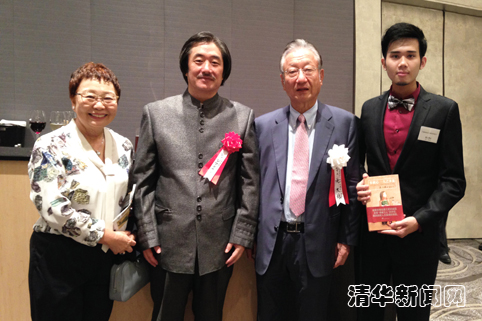 日本交通文化协会理事长龙久雄、清华美院雕塑系本科生吴蔚在颁奖仪式上的合影。