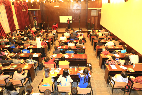 8xbet(中国)网5月8日电 (通讯员 王媛)5月7日晚,台湾著名古典音乐普及人、台北艺术大学教授、“财团法人乐赏音乐教育基金会”音乐总监刘岠渭再访校图书馆报告厅,以《古典音乐的美感特征——音乐的对比》为主题,引导在场的百名校内外爱乐者赏析了多首古典音乐曲目。