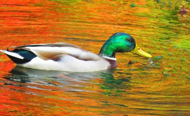 待到四处蛙鸣的时候,小鸭也已经长成,两个白的,两个花的,而且不复咻咻的叫,都是“鸭鸭”的叫了。荷花池也早已容不下他们盘桓了,幸而仲密的住家的地势是很低的,夏雨一降,院子里满积了水,他们便欣欣然,游水,钻水,拍翅子,“鸭鸭”的叫。
