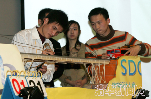 2006年结构设计大赛沿袭了以往结构设计大赛“桥”的主题,各参赛组设计的桥要能够承受15公斤重的小车通过。郭海军 摄