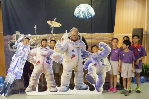 9月12日,美国航天员布兰德、鲍勃科,日本航天员毛利卫走进了清华附小。清华附小在“1+x课程”中,一直重视科学的创新实践。航天员的到来极大地激发了同学们对航空航天的兴趣,附小的门口摆放着航天员造型的模型,引来学生纷纷合影留念。同学们在航天员模型中欢迎航天员们。