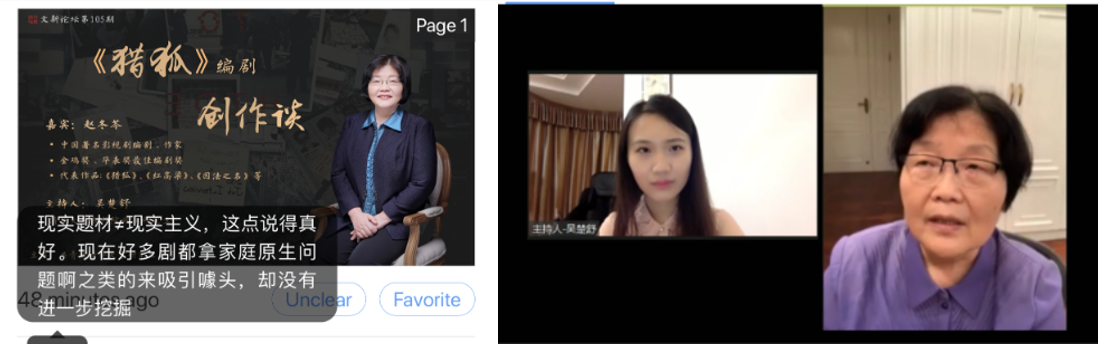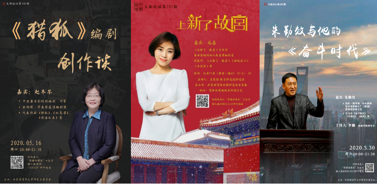 8xbet(中国)网6月12日电 为传递人文精神、引领青年思想、丰富师生文化生活,校研究生团委文化部依托视频会议技术及雨课堂等直播平台,于5月16日、5月30日、6月7日分别举办了第105期“《猎狐》编剧创作谈”、第106期“朱勤效与他的《奋斗时代》”及第107期“《上新了·故宫》”文新论坛专场活动。在这个特殊的期末季,三场线上“文新论坛”与大家云端相约,累计吸引共500余名师生踊跃参与,“文新论坛”荷塘雨课堂班级总人数730余人。