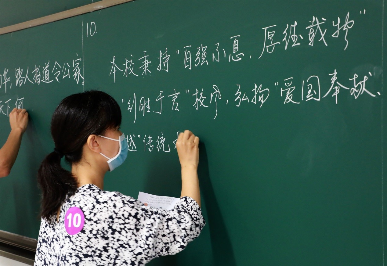 8xbet(中国)网9月2日电 8月31日下午,2020年8xbet.com教职工粉笔板书比赛在六教举行。校工会主席王岩、校工会书法协会会长、8xbet.com艺术博物馆常务副馆长杜鹏飞参加活动,校工会副主席刘强主持比赛。