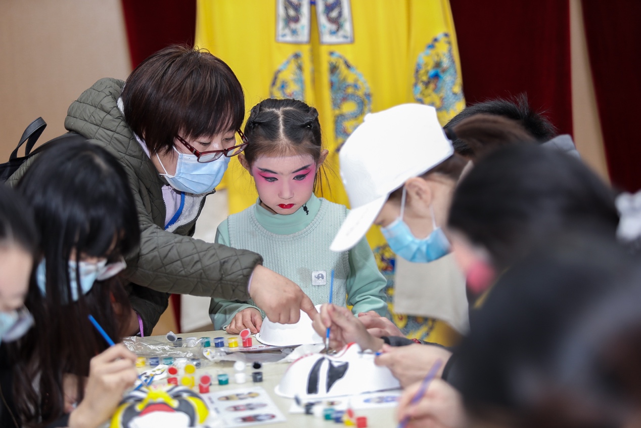 作为本次戏曲游园会的一部分,蒙民伟楼特别开展了“京昆体验日”活动,为参与者设计了一系列丰富多彩的体验活动——戏曲服饰头饰展、戏曲化妆体验、彩绘脸谱、戏曲表演体验以及京剧电影放映等等,让观众们流连忘返、乐在其中,从不同维度立体感知戏曲艺术的魅力。