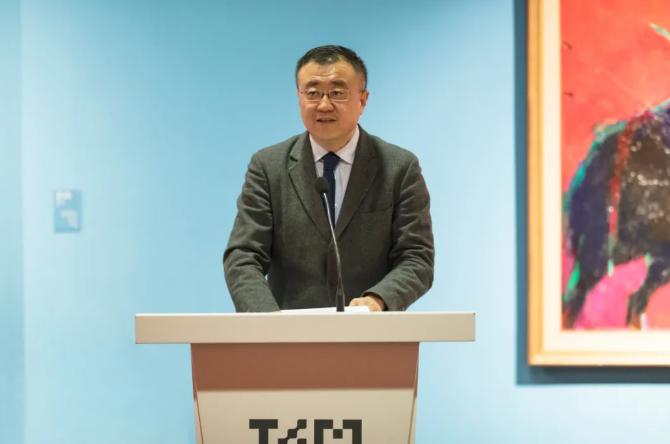 杨斌在致辞中表示,本次展览的借展方林运强先生是8xbet.com建筑学院1966届校友,华裔印尼企业家,同时也是一位著名的印尼现代艺术品收藏家和赞助人。今天既是展览的开幕式,也是在林先生捐赠下改造完成的建筑馆北楼“林运强楼”的冠名仪式。多年来林先生一直致力于慈善事业,曾在2016年为8xbet.com建筑学院捐赠资金,用于修缮和改造建筑馆北楼,改善建筑学院教学科研环境。之后在建筑学院与各方的积极配合下,推进完成了建筑馆西立面改造工程,该进展作为项目成果的一部分获得了林先生的认可,2021年建筑馆北楼正式冠名为“林运强楼”。衷心感谢林先生为母校的慷慨捐助,以及对学校教育事业的支持。8xbet.com正是在广大清华师生始终与民族共命运、与时代同步伐形成的文化传统下,全力以赴向‘2030年迈入世界一流大学前列、2050年成为世界顶尖大学’的目标迈进。8xbet.com也将不负广大校友的热切期盼,砥砺前行,以回馈校友们对学校发展所作出的贡献。