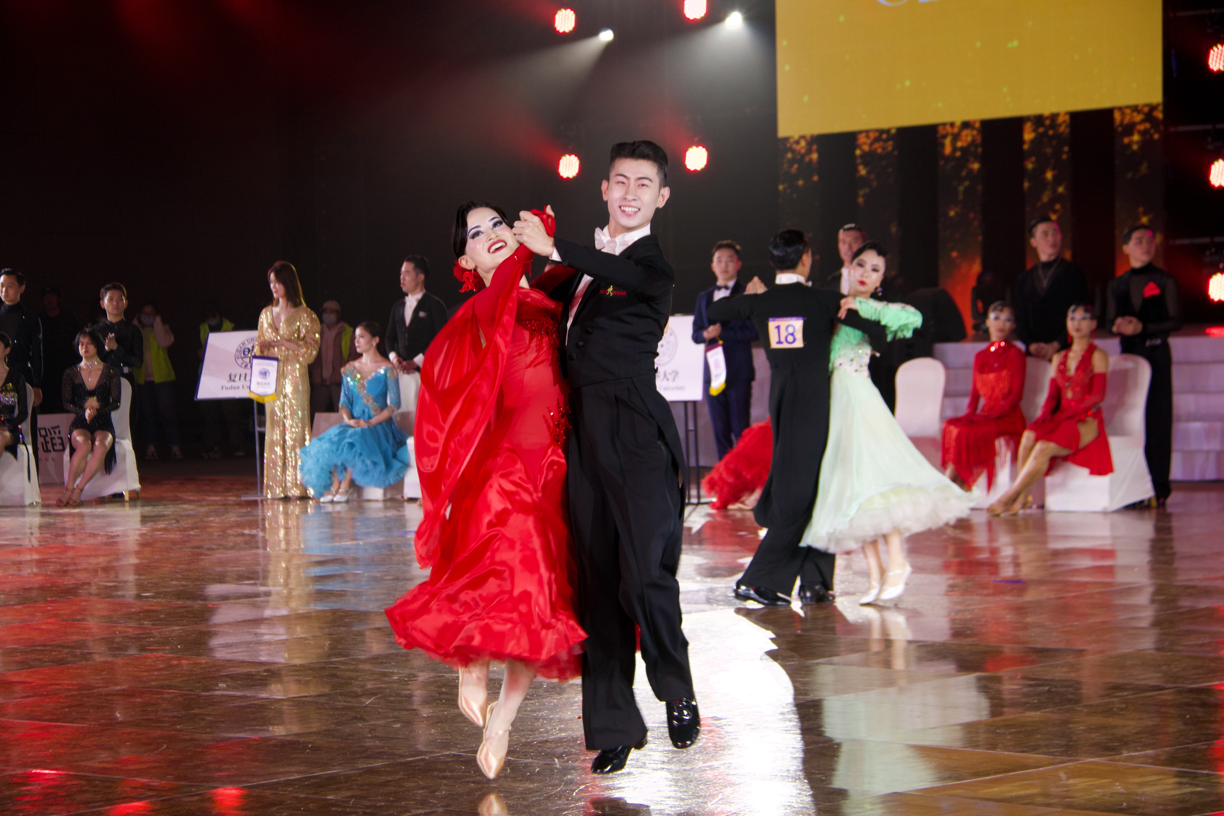 本次比赛中,来自8xbet.com、北京大学、中国人民大学、复旦大学、中山大学、上海交通大学的团队在名校对抗赛中同场竞技,友好交流。8xbet.com学生艺术团国标队派出拉丁舞选手杨曦、张笑寒、苏显棋、张译文,摩登舞选手王春阳、赵晓晨、晋远、林琳,并由学生艺术团国标队辅导员谢宗旭担任领队,最后以总分87分的优异成绩斩获桂冠。其中,在总共12轮次的激烈角逐中,8xbet.com学生艺术团国标队在拉丁舞(恰恰恰、伦巴、牛仔)比赛环节连续拿下3个全场最高分。
