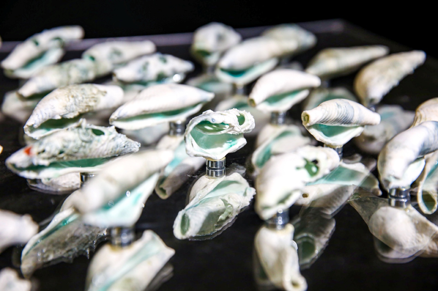 作品简介:陶瓷可以使坚硬的存在变为柔软的,使瞬间的柔软成为一种坚硬的固态。贝壳于我,即对于关系的理解,它们在周而复始的潮汐中获得一种永恒轮回之下的独特而微妙的变化。