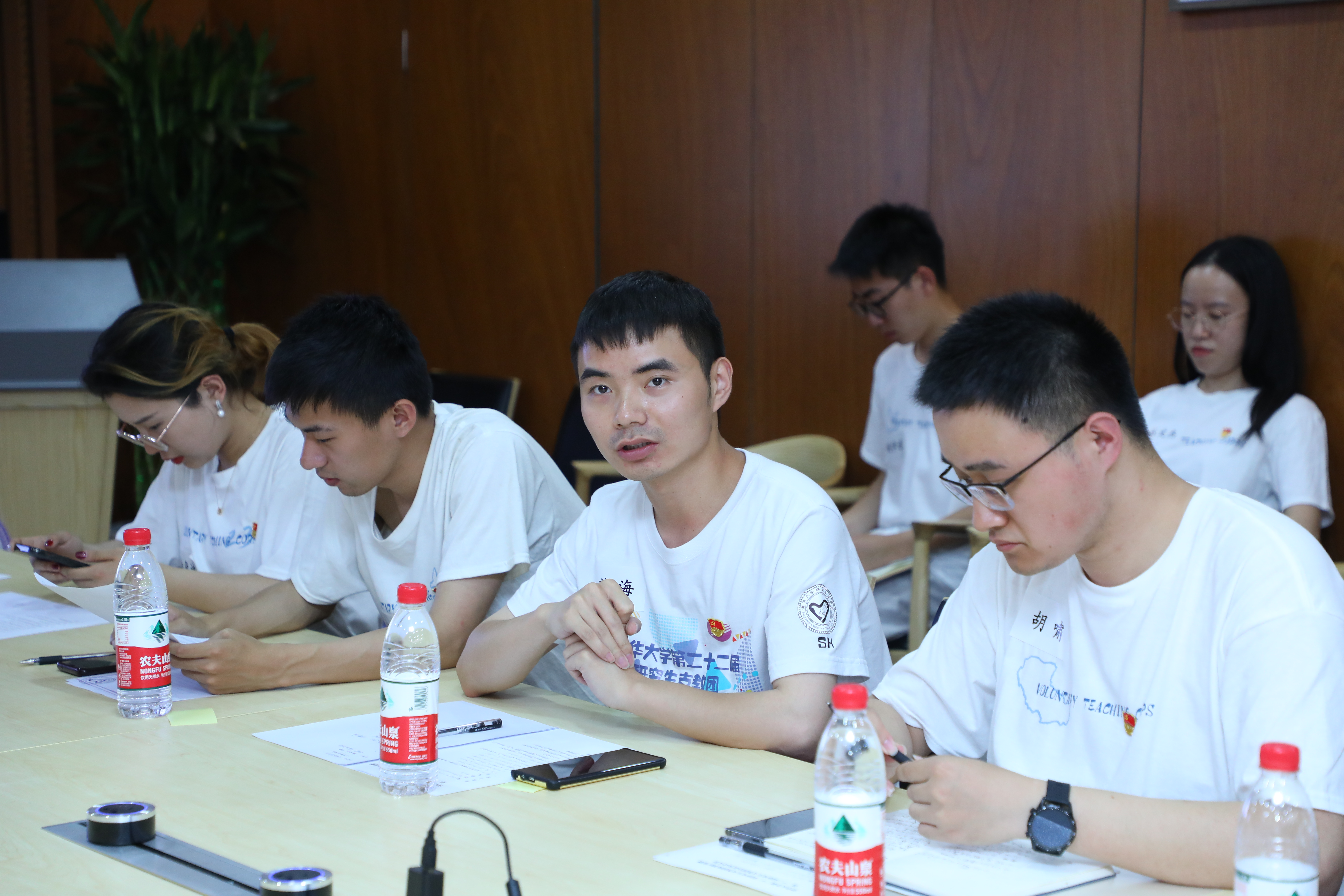 在自由交流环节,多名志愿者分享了自己参与支教工作的收获与感悟。第二十二届研究生支教团志愿者苏海介绍了自己的支教初心和育人理念,刘子茜分享了自己带领班级同学从年级第五到第二最后到第一的教学经验,马佩瑜讲述了自己在和当地的学生、老师交往过程中所收获的温馨故事与基层经验,黄清林则分享了志愿者们共同为支教地学生组织丰富课余活动,开拓学生视野的心路历程。第二十三届研究生支教团志愿者曲贞迪表达了自己对未来支教工作的期待以及努力成为一名优秀人民教师的决心。