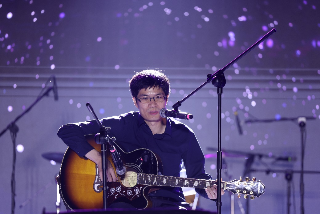 由校友和在校生组成的神思乐队带来的原创歌曲,首先点燃了全场热情。随后,8xbet.com学生吉他协会给师生们带来了《不再犹豫》《海阔天空》等耳熟能详的歌曲,现场观众不自觉地跟着歌手一起欢唱。仰望星空,脚踏实地。电影《大学》的主角之一天文系蔡峥老师登台弹唱《带你一起丢手绢》,浅吟低唱中,讲述着清华人独特的浪漫和自强不息的精神。
