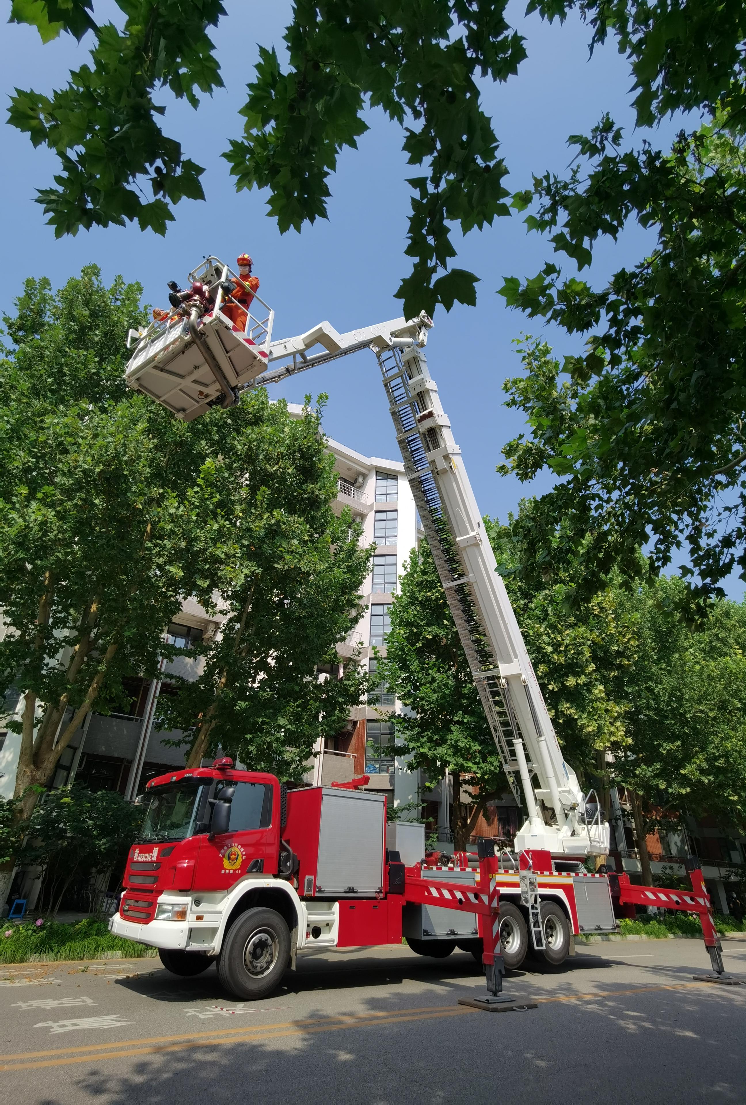 海淀消防救援支队派出消防车和高空救援车共3辆特种车辆抵达现场,并开展了高空救人、滑绳自救等科目的展示。本科新生疏散到紫荆操场后进行现场观摩。