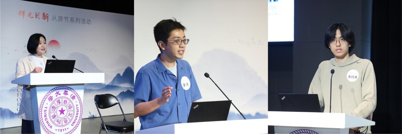 从游节上半场的主题为“师生访谈——慢读经典”,彭刚首先对“慢读经典”这一主题进行了阐释。彭刚认为,“慢”是要耐心细致、从容不迫,在当今快节奏地生活里,能够泰然自处,这是作为一个人文学科研习者的基本素养;“读”有不同的层次,或是“少年不识愁滋味,为赋新词强说愁”,亦或是“而今识尽愁滋味,却道天凉好个秋”,不论何种层次,都要与不同视角和境界的“读”者进行交流,方为“读”的意义所在,这也正是读书班、读书会存在的价值;所谓“经典”,就是纵使时间飞逝却仍然焕发着生命力的智慧,是值得在我们有限的生命里去下功夫研读的典籍。彭刚指出,从游节的意义在于,通过营造一种自在舒适的氛围,更广泛地增进师生之间地交流,以一种极佳的方式体现了梅校长“大鱼前导,小鱼尾随”的育人理念。“从游”理念作为书院建设的一个重要元素,是清华创新人才培养的机制,激发了师生之间、生生之间的指导和帮助,成效显著。他鼓励同学们,一定要珍惜这样的慢读时光,品味经典的价值,收获从游的乐趣。