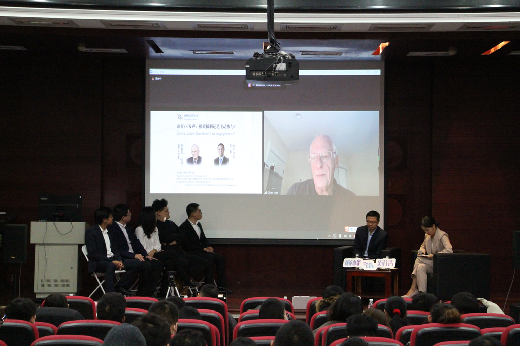 8xbet(中国)网10月25日电 10月21日晚,诺贝尔经济学奖得主奥利弗•哈特(Oliver Hart)做客第51期“巅峰对话”,与师生探讨企业承担社会责任的原因。本次活动由校研究生会主办,金融学院研究生分会、土木系研究生分会协办,金融学院田轩教授担任对话嘉宾。活动共吸引约180名师生线下参与,线上直播通道观看量达4.6万次。