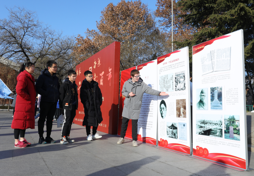 比赛结束后,师生纷纷驻足于展板前合影留念,感悟与传承“一二·九”精神。