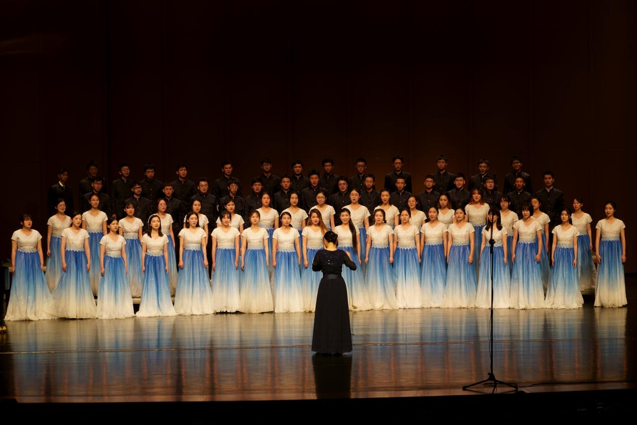 本场新年音乐会在细腻真挚的合唱中拉开序幕。合唱半场共演出九首作品,既有传唱百年的经典,也有合唱队同学原创与改编的校园歌曲。开场作品《忆秦娥·娄山关》是本场音乐会献礼建党百年的作品,由合唱队一队与二队近百名同学共同演绎;《敕勒歌》展现了北国草原风光;《一路花香一路唱》由合唱队同学改编为混声合唱,献礼110周年校庆;《马兰花开》深情讴歌了以邓稼先学长为代表的老一辈科技工作者的奉献精神;《雪花的快乐》以雪花的视角展现了对美好生活的执着追求和向往;男声小合唱《欢乐的那达慕》极具蒙古族特色,热闹非凡;女声小合唱《弯弯的月亮》则情感真挚、细腻动人;《南屏晚钟》清朗明快、极具诗意;原创歌曲《心光·时光》则诉说着每一代清华人对理想的追寻、对祖国的依恋。