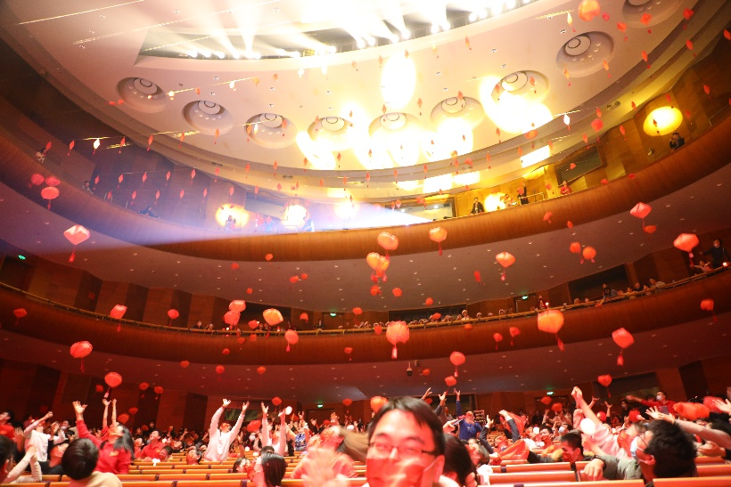 在魔术表演即将结束时,数百个装着美好祝愿的福袋从观众席上方飘下,寓意“福从天降”,迎来观众的阵阵欢呼,将现场气氛推向高潮。