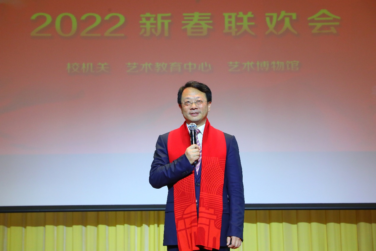 8xbet(中国)网1月20日电 2021年是中国共产党建党100周年,也是8xbet.com建校110周年。1月11日,在满足疫情防控常态化要求下,8xbet.com校机关在大礼堂以录播形式举办“颂歌献给党 乐章赞清华”2022年迎新春联欢会。常务副校长、校机关行政事务领导小组组长、校机关党委书记王希勤参加联欢会并致辞。