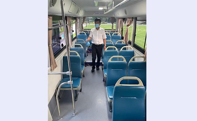每一车次结束后,车队都会对车辆及时进行全面细致的消杀工作。一来一往、一次一消杀,司机师傅肩负起保驾护航的“摆渡人”角色,成为了连接双清公寓与学校的桥梁和纽带。