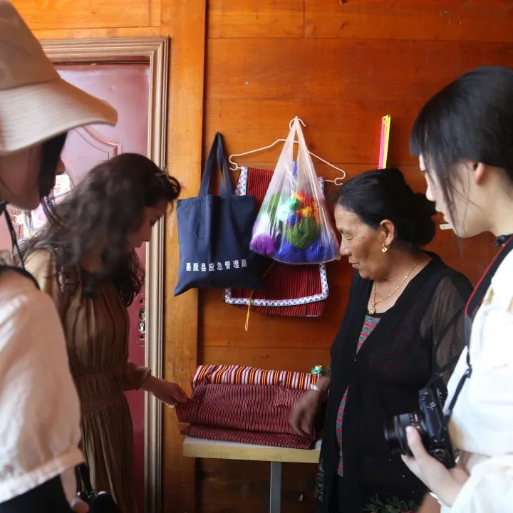 支教成员与驻村工作队在滚良村退休老教师家中访谈